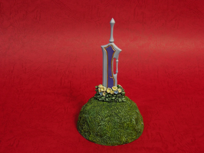 塗り分けに気合い入れたイスケンデルベイはなかなか見栄えがします。彩色自体は元のCGデータの時点でしていたのでイメージは掴めていたつもりでしたが、実物を見るとかなり印象は異なります。剣単体で立体化しても誰得かもですが、こさえた私は満足しているのでまあ良いかな、と。