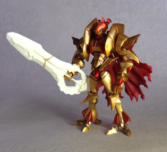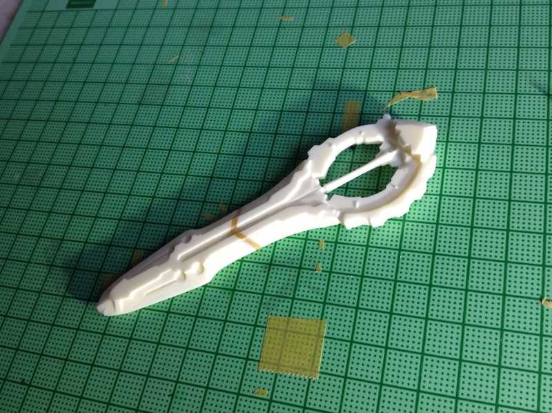 これ単独でぽんと出して一体全体どちらの誰か様が得をするのかよく分かりませんが、少なくとも私は楽しい。もともと、無版権の何かを作ってお気楽なWF参加をしよう、15cm位のロボ模型に対応できるSFな刀剣でもこしらえよう、イスケンデルベイみたいな、とか考えていたわけですが。ここまで考えて「……いや、みたいな、じゃなくてそのもの作れば良いんじゃ……」となって、本作制作に踏み切った次第。