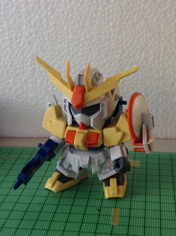 SDガンダムを全塗装するのは、かれこれ十年ぶり……いや、もっと経ってる……おかしいなんで……? まあ、それはともかく、原色そのままで塗装するのはあまりないことなので、楽しくはあります。キットはボリューム満点で満足度も高いのですが、塗り分けが多く、マスキングが少し面倒です。実際、写真でみると失敗しているところもあるのがなんともかんとも。気になったら直します。