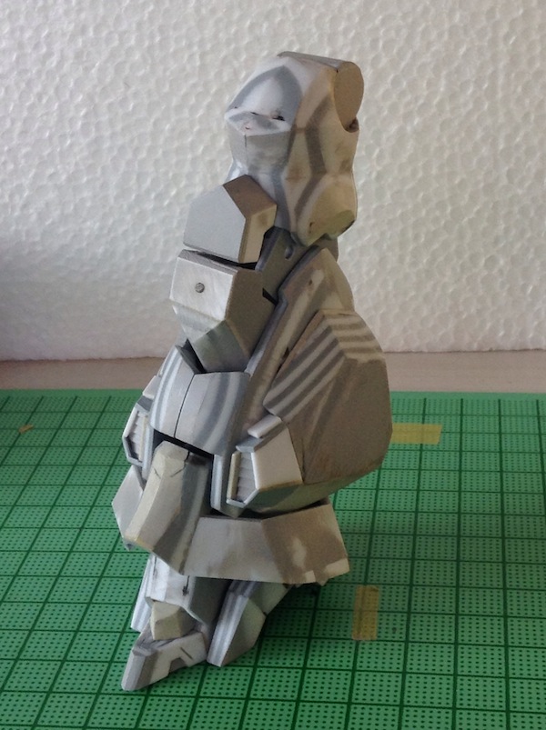 頭部がでかいのは個性とするとしても、そのままでは着ぐるみ感がすごいので、首の位置をずらしてみました。