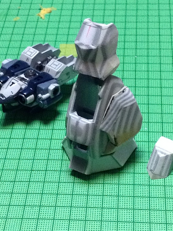 プラ板積層を対角線で削り出すだけのストレスフリーモデリングなのですが、めっさ硬いプラ板積層をひいひい言いながら加工しなくてはいけないので効率は大層よろしくありません。こんなときには超音波カッターとかあれば、と思うことしきりですが、このためだけに導入するくらいならナイフの刃を頻繁に代えるほうが遥かに安上がりだし、むしろ絶対使いこなせず持て余すに違いありません。そのあたりはわりと目に浮かびます。
