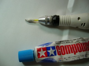 ちなみにこういう細かいクリアパーツを磨くには、リューターのビットを綿棒に交換して、コンパウントを塗布して磨くと簡単にできるようです。