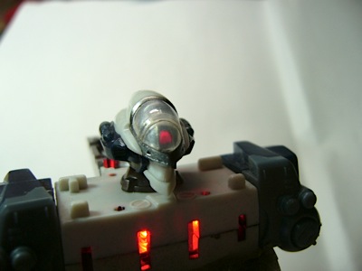 ちなみにパーツの隙間から光が漏れて、頭部などは見る角度によっては二つ目があるように見えます。格好はいいのですが、これではテルスらしくないので完成前には埋めておきたいところ。首もとも光が漏れてみっともないですし。