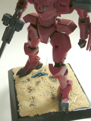 で、例の片付けの途中で木粉粘土が出てきました。ジオラマ用に買ってあったものですが、せっかくなので市販のベースに盛って砂漠風の地面を作ってみました。