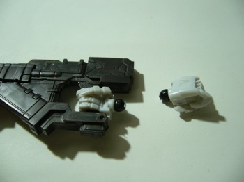 キットのままだと手で握っている感じがしないので、親指と人差し指を切り離して、角度を変更して再接着しています。