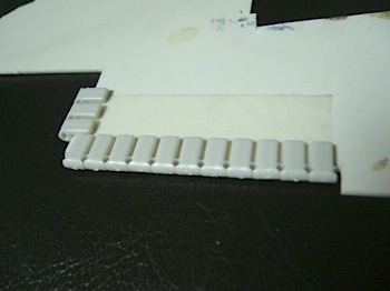 ちなみにヒンジはプラ板に両面テープで並べて固定すると、まとめて表面処理ができて楽でした。本当は一列になるように十分な長さのプラ板を用意すれば良かったのですが、適当にやったので3つばかり外に出てしまってます。