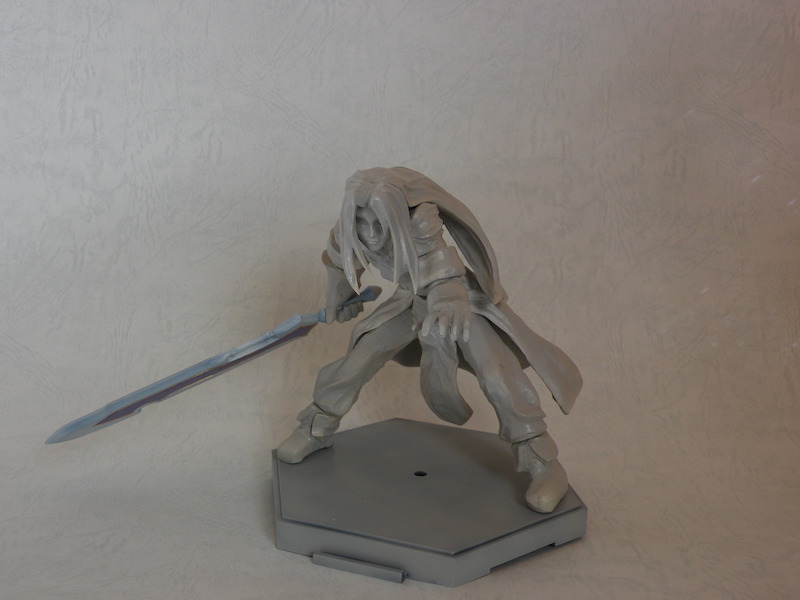 そのころは胸像でも良いかと思っていたのですが、コートの裾まで作らないとキャラクター性がイマイチ表現できない気がしたので全身を作ることになったのです。もっとも、作業していて楽しかった部分の上位がズボンの皺とかなので、悪い選択ではなかったと思っています。