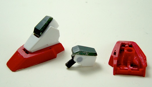 まずは工作の順番上、主翼から。挟み込んでマスキングして合わせ目消して、という行程を踏むべしと雑誌には書いてありましたが、オズマ機はグローブが上下で色分けされているので合わせ目消しはそれほど気にしなくても良さそうです。とりあえず、エッジを削って、塗装デカール墨入れと一通りの工作を仕上げてみました。墨入れは少し薄かったかも。翼端灯はバトロイドで飾る予定なので塗装で済ましてしまう予定です。
