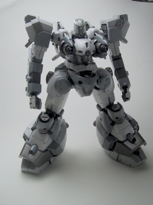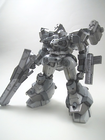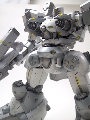 それにしても、組んでみると色々なところで行き届いている感じがする良いキットだと思います。ポリパーツ周辺をしっかり固めてあって、間接強度をしっかり確保してあったりとか。この間接強度からすると追加武装は相当なボリュームになるのではないでしょうか。パーツ分割も優秀なのですが、分割線はかなり自由に元デザインをアレンジしてあります。塗装するには楽なのですが模型としてはどうかと思わないでもありません。