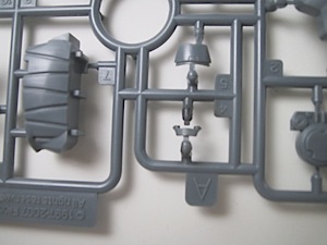 さて、このキットを仮組してから半年以上が経過しているわけですが、その間にパーツを紛失することもあります。とはいえ、今回は1パーツのみ(頭部のくちばしの部分・真ん中の4番のパーツ)という快挙。しかしながらその無くしたパーツは小さい割に微妙な曲面をしているために新造するのは面倒。エポパテ練ったり、欠けを埋めたりはもっと面倒。というわけで、カラサワ用に購入しておいて積みっぱなしだったキットの在庫から予備パーツとして使います。