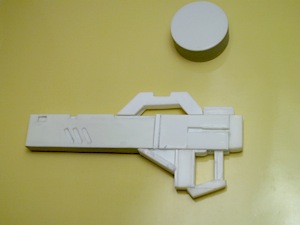 まずはマシンガン。ゲーム中のバランスよりもやや大振りに作っています。というのも、本来のファシネイターの装備であるところの、通称800マシンガンがゲーム中の印象よりも一回り二回り大振りにアレンジされているので、それに合わせて大型化しているというわけです。800マシをロングバレル化して、射撃精度と速射性を高めた、というイメージで。