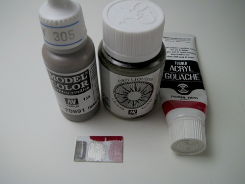 ところがこのアルコール系、現時点では混色がサポートされていない状態にあります。金属色は複数出ているのですが、ファレホの通常色とは混色ができないようになっているみたいです。上からクリアカラーで色を乗せることもできるのですが、それだけでは出来ることも限られてきます。