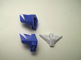 まずは頭部。目指すものは海老川画稿なので、それに合わせて頬当てを広げます。右が今回の作業のもので、左が以前の作りかけのもの。さらにあごを削ったり、首を伸ばしたりしてます。