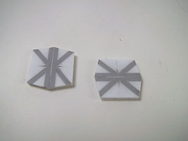 というわけで、ミサイルの蓋。没にした方は筋彫りで表現してましたし、ゲーム画面を見る限りでも面一になっているように見えますが、路上のマンホールにインスパイアされて、今度はプラ板を使ってみました。この方が精度出しやすいし。