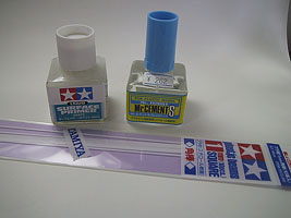 田宮の白サフ(瓶入り)。ブラシだと噴きにくいという話も聞きましたが、傷埋めにはなかなか重宝します。乾燥も速く、硬化後もかっちりしている印象があり、ラッカーパテの貧弱な感じがあまりしないような気がします。とくに比較とかしてないので、あくまで印象論ですが。