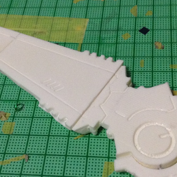 そんなこんなで形にはなります。全長265mmというサイズには慄きましたが、実際にやってみれば最低5枠、場合によっては1枠追加でパーツが揃うので、以前に出したレーザーライフルよりも楽に出力できたことになります。何だったんでしょうねアンタレス。