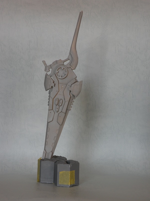 グラムザンバーの方も没写真です。800*600だと極端に縦長の被写体が収まりが悪い、ということで一応撮っておいたのですが、横長でも一応収まったので。概ねパーツは揃った状態です。台座はイスケンデルベイのものでも一応支えられるのですが、サイズ的に極端な差があるので見栄えがよくありませんでした。そこでイスケンデルベイのものを三つ組み合わせてみました。全部でレジンおよそ120gになります。今回の販売数十個+提出&展示二個の計十二個で1440g。台座にこれというのも少しげんなりする数字ではあります。