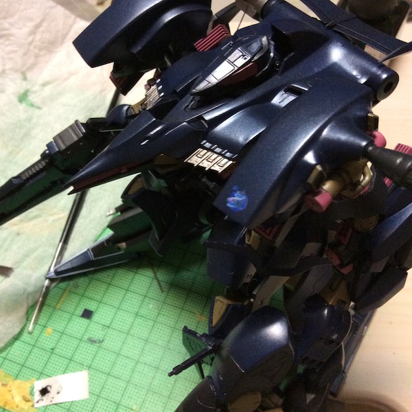 この後、流し込み接着剤をぶちまけて、塗装どころか幾つかのパーツ自体をダメにしました。幸い、ジャンクパーツから確保していたアリーヤのパーツでダメにしたパーツは賄えたので何とかなりました。持ってて良かった予備パーツ。